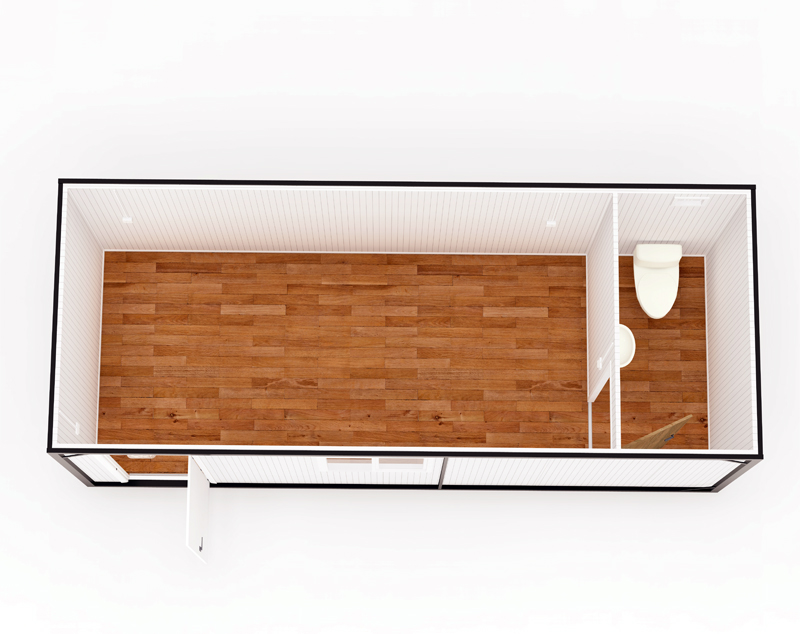 • WC'li Ofis: Bir köşeye yerleştirilen 110x110 cm ölçülerinde kompakt bir ıslak hacim (WC/Lavabo) ile tüm temel ihtiyaçlar tek çatıda toplanır.
